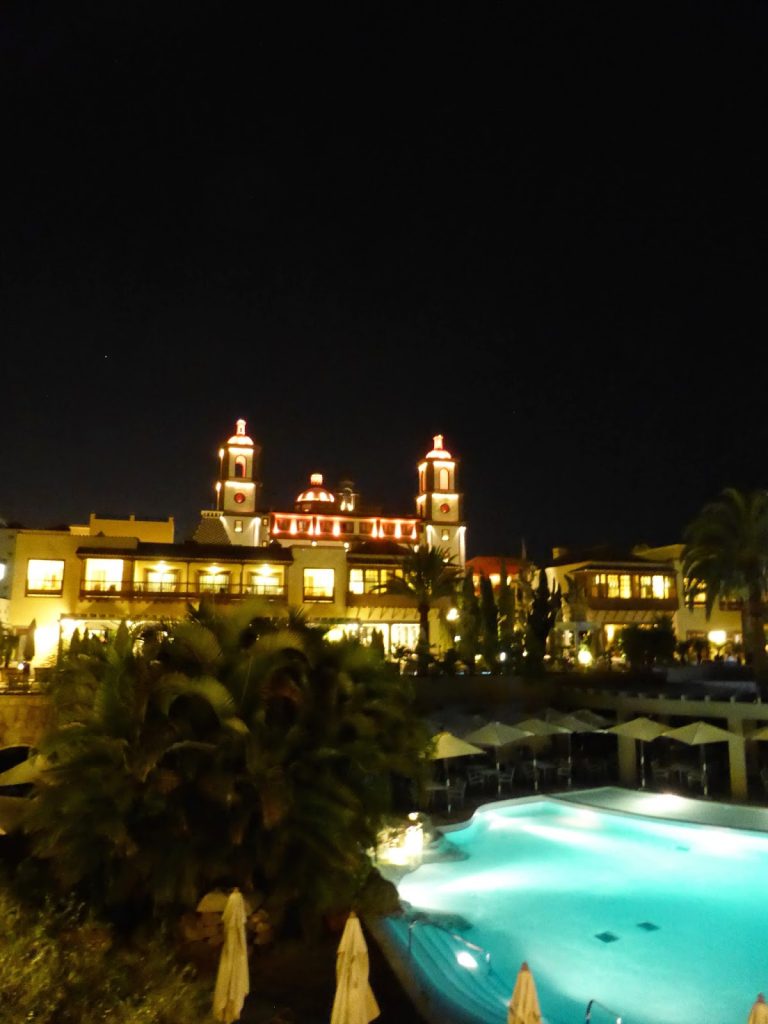 It’s beautifully built with the shape of a canarian village, with the traditional hill top “church” being the reception – beautifully seen from far and lit-up during night time.