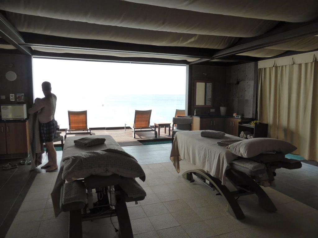 The private spa suites are lovely, your own water therapy pool, lounge chairs with tea, minibar – all directly seafacing – is a real treat and we can highly recommend the spa.